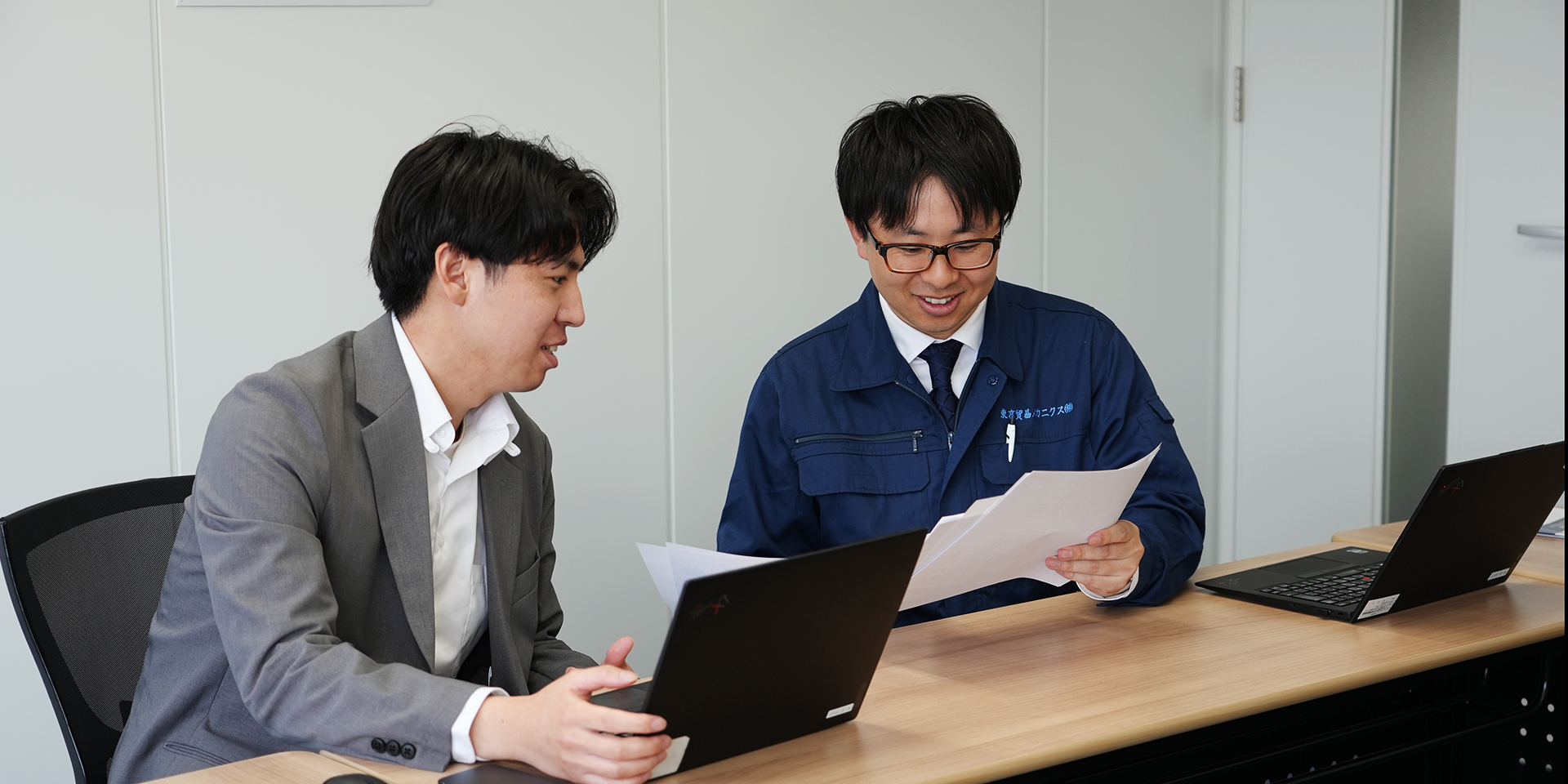 今回ご登場いただくのは、ほぼ同時期に入社した二人。異なる経歴を持ちながら、このニッチな業界に飛び込みました。切磋琢磨しながら力を磨き、営業としての可能性を広げていく――その現在地と、これから目指す姿を語ってもらいました。